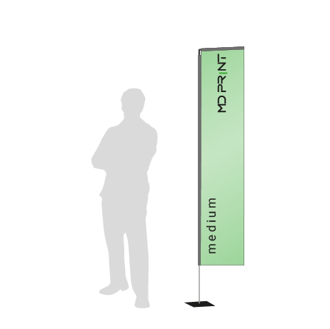 Die Beachflag Rechteck Medium von MD PRINT - ONLINESHOP in Siegen, Siegerland, Wittgenstein, Süd-Westfalen, NRW, Westerwald-Kreis, Lahn-Dill-Kreis, Sauerland und Hochsauerlandkreis bietet genügend Platz für Aufdrucke, welche dank der Rechteck-Form besonders gut zur Geltung kommen. Damit sichert die Fahne sich die Aufmerksamkeit der Passanten und ist so ideal als Wegweiser oder zur Kommunikation von Botschaften geeignet, beispielsweise auf Messen oder Events, vor Autowerkstätten, an Ständen in der Fußgängerzone oder als Außenwerbung vor dem Einzelhandel. Die Fahne ist vielseitig einsetzbar und sowohl für einmalige Verwendungen wie Geschäftseröffnungen oder Produktvorstellungen als auch als dauerhafter Werbeträger geeignet.