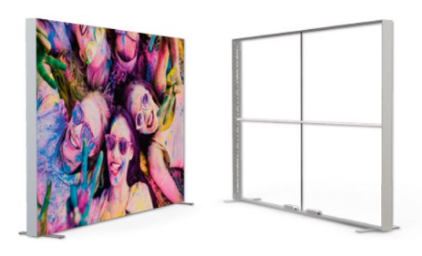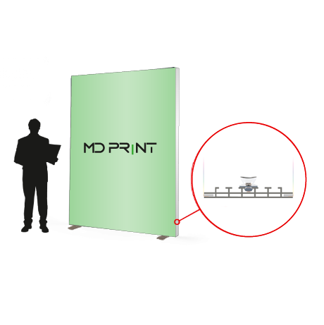 Der MULTIframe SIDELIGHT von MD PRINT - ONLINESHOP in Siegen, Siegerland, Wittgenstein, Süd-Westfalen, NRW, Westerwald-Kreis, Lahn-Dill-Kreis, Sauerland und Hochsauerlandkreis ist ein vollflächig hinterleuchteter LED Rahmen mit einer Bautiefe von nur 12-16 cm (bis 200 cm Höhe: 12cm, ab 250cm Höhe: 16cm Bautiefe). Das einseitig und doppelseitig verwendbare Aluminiumrahmenprofil eignet sich dank der stabilen Füße hervorragend für den Einsatz als Raumteiler. Durch die spezielle Linsenform der LED Module kann man trotz der schmalen Bautiefe keinerlei Lichtpunktbildung auf der Stoffoberfläche entdecken – das Motiv wird einheitlich und schattenfrei dargestellt. Die Stoffgrafiken sind mit Gummilippen versehen, die ihnen einen perfekten Halt im Rahmensystem ohne Falten geben. Darüber hinaus ist mit diesem System ein einfacher und rascher Grafikwechsel möglich. Nicht nur die Leuchtkraft von ca. 5000 lm, sondern auch die homogene Ausleuchtung machen den MULTIframe SIDELIGHT zu einem Leuchtrahmen, der alle ähnlichen Produkte in den Schatten stellt. Alle Systemteile sind auch als Einzelteile erhältlich.