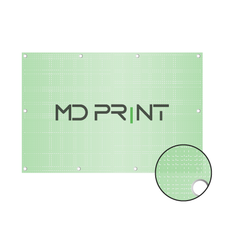 Das verwendete Material ist Displaystoff mit einem Gewicht von 205 g/m². Die Größe ist variabel, ab einem Mindestformat von 10 cm x 10 cm können Höhe und Breite frei gewählt werden, es wird auf Format geschnitten. Zur Verfügung stehen die Banner mit Umsäumung, Ösen, Mastschlaufen, Klettband oder Flauschband, auf Anfrage sind auch individuelle Lösungen möglich.